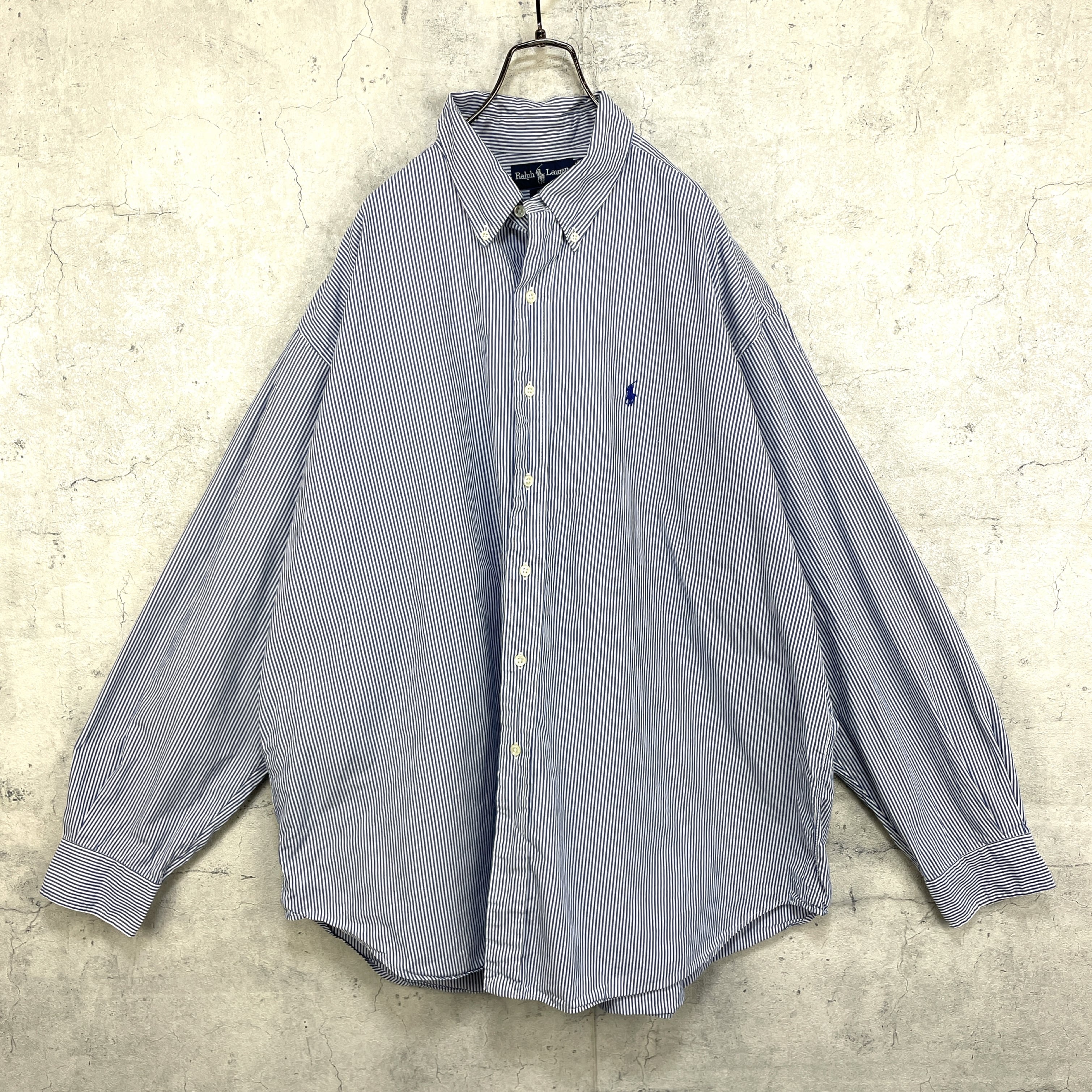 90's ラルフローレン ストライプシャツ 刺繍 ビッグシャツ