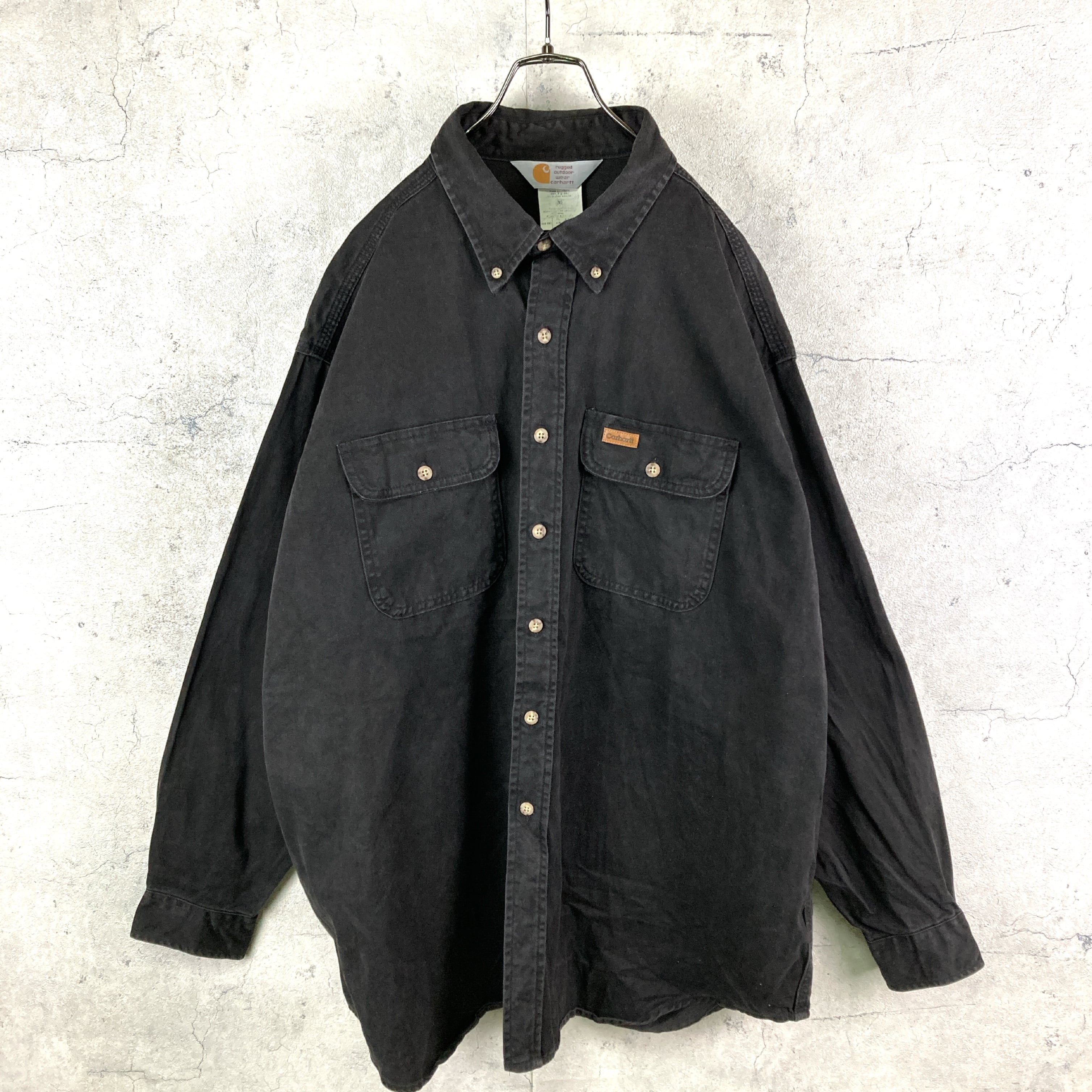 90's カーハート ワークシャツ USA製 レザーロゴ